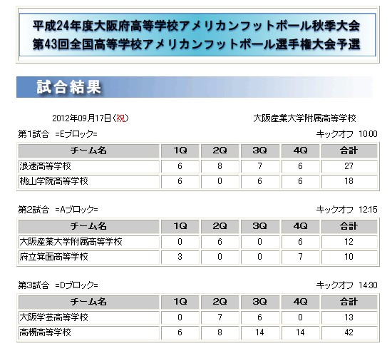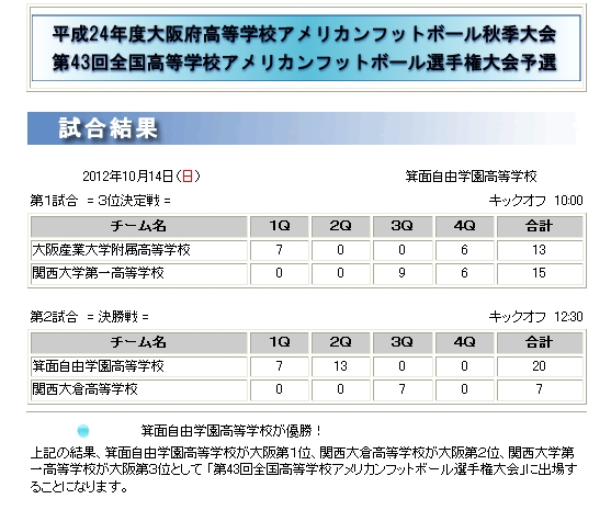 平成24年4月に行われた大阪高校春季アメリカンフットボール大会で、